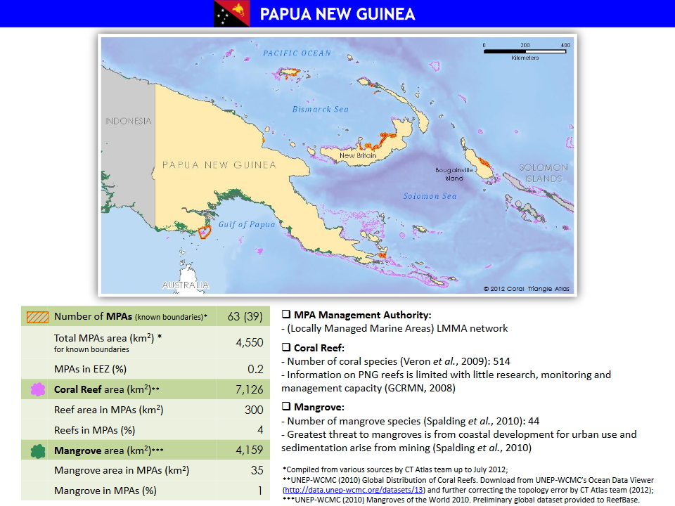 Local management of resources has a long tradition in Papua New Guinea. Coastal communities are heavily dependent on the near shore marine environment for a variety of foods and land/sea tenure is under traditional ownership. As such the primary method for conservation in Papua New Guinea is through Locally Managed Marine Areas (LMMAs). While the LMMAs of Papua New Guinea are relatively small, they are effective in maintaining benefits for local communities.